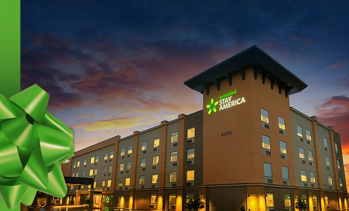 Save up to 59%* at one of Extended Stay America's 700+ locations across the United States. When you get to the hotel, the gift keeps on giving. You can rest easy knowing you have great amenities like spacious suites with fully equipped kitchens, free wi-fi and on-site guest laundry. Bring your furry friend, because we offer pet-friendly rooms to accommodate them, too!